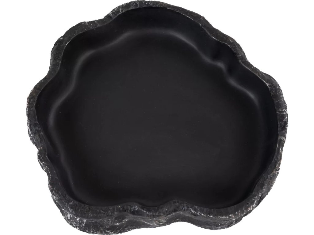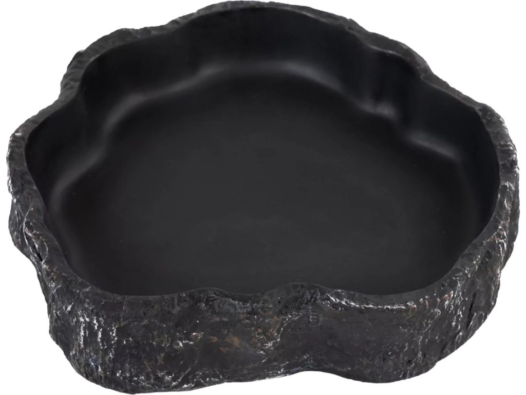 Miska na vodu či krmivo pro plazy, obojživelníky a další druhy zvířat, v černém designu.