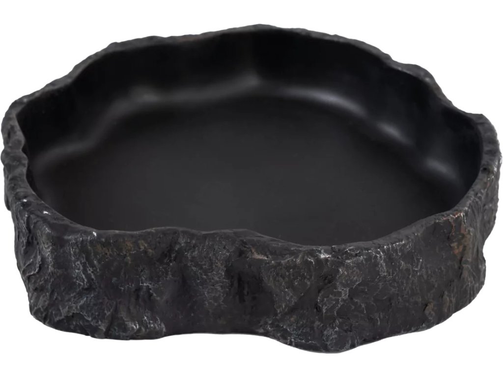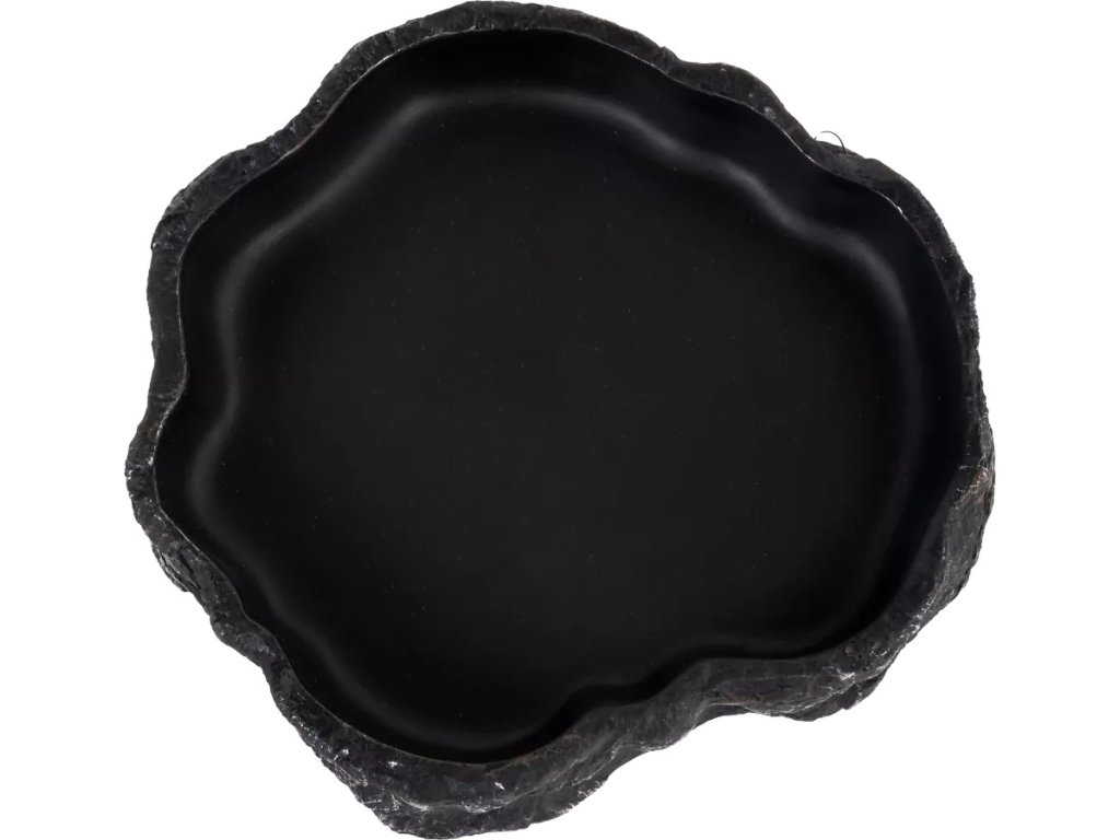 Miska na vodu či krmivo pro plazy, obojživelníky a další druhy zvířat, v černém designu.